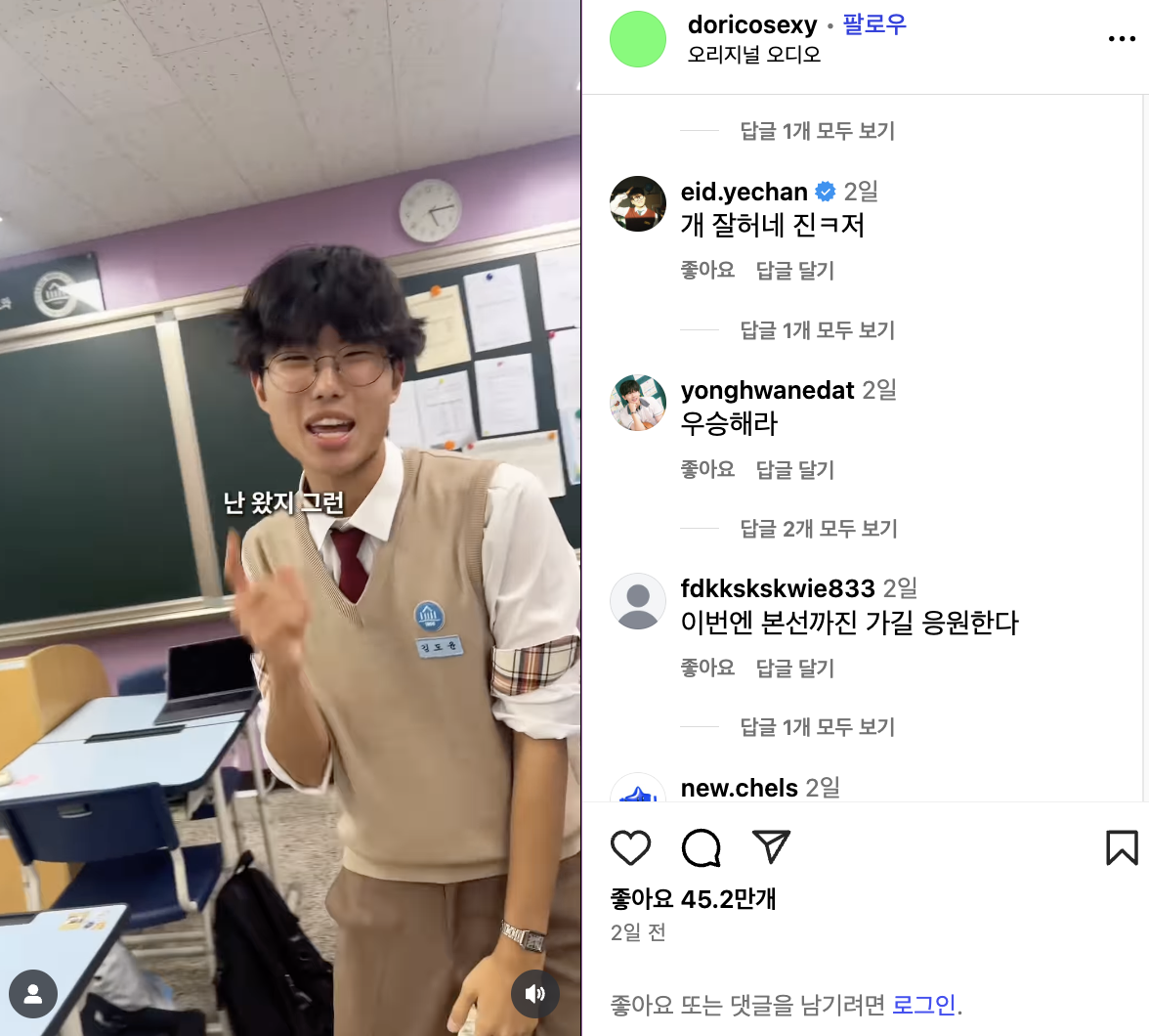 사실 쇼미더머니11에도 출연했었지만, 큰 이목은 끌지 못하고 탈락했었다고.🥲 이번엔 특유의 개성 있는 가사와 교복 차림의 영상이 다른 지원자와 비교되어 눈길을 끌었어요. ‘랩하면서도 여친, 전교 회장까지’, ‘틀딱 래퍼들 혼내주러 왔다’ 같은 재치 있는 가사가 특히 화제 포인트예요. 이영지가 좋아요를 누르며 샤라웃하기도 한 서라벌고 1짱 도리코! 활약이 벌써부터 기대되네요…🎤