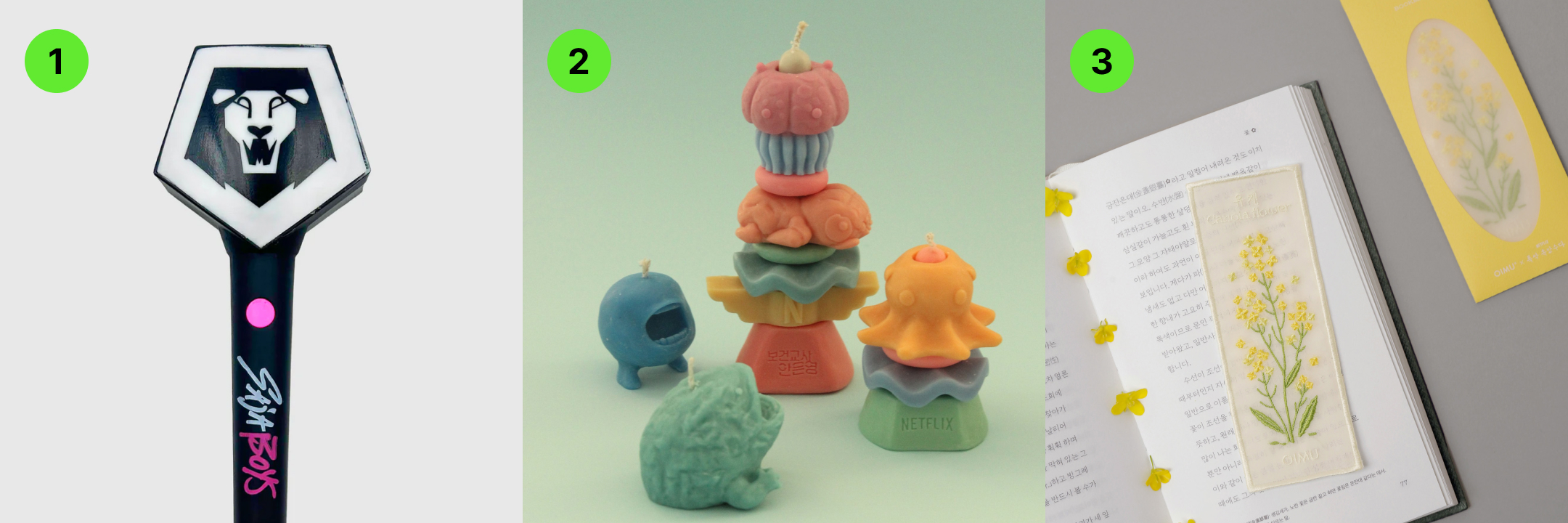 - 폭싹 속았수다 책갈피🌼 : 폭싹 속았수다의 주인공 ‘애순’이 가진 문학소녀라는 컨셉에 맞게 한국적인 디자인으로 유명한 'OIMU'와 협업했어요. 드라마의 서사를 그대로 담은 ‘유채꽃 책갈피’의 경우, 품절까지 될 정도로 인기였죠