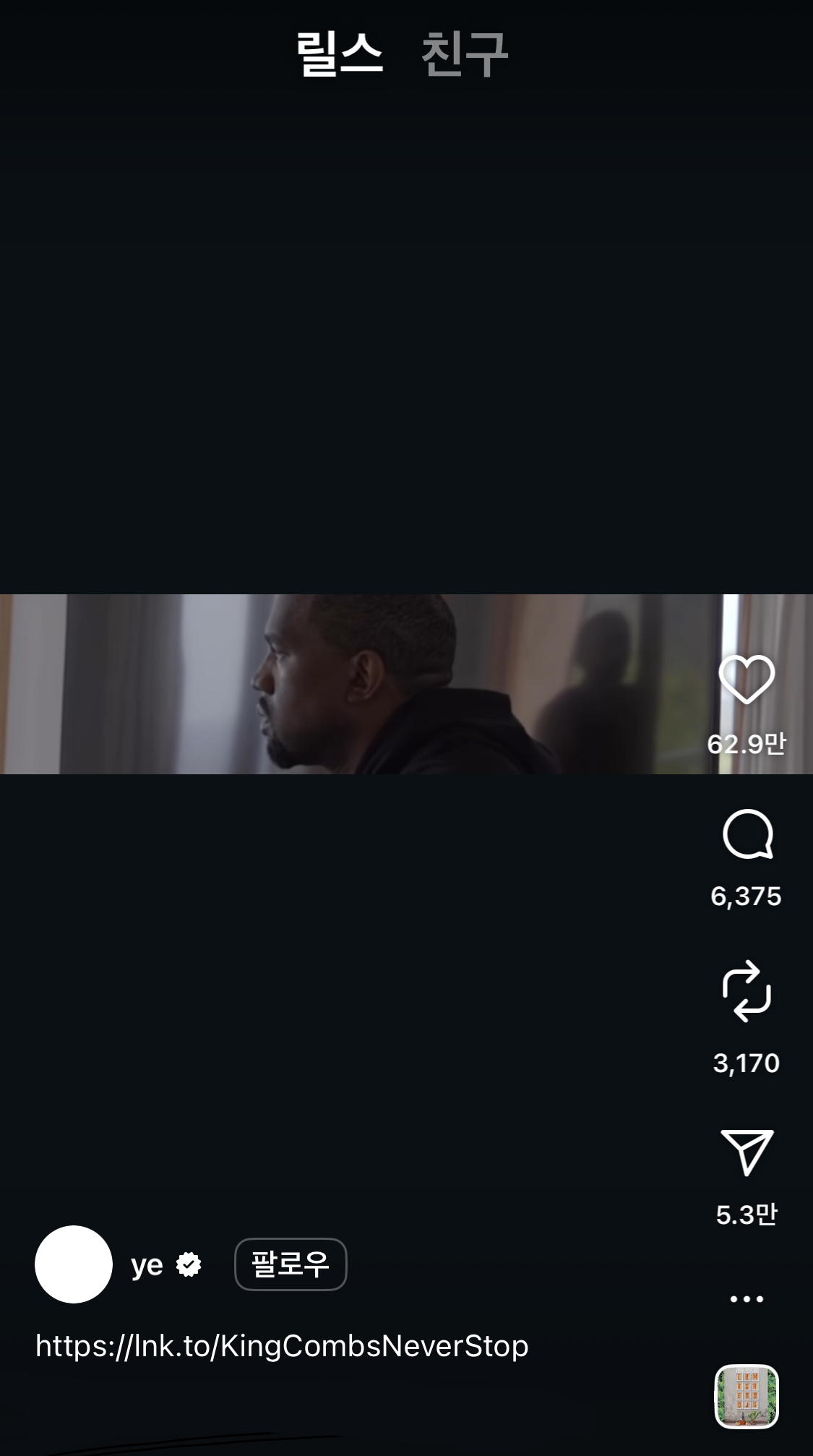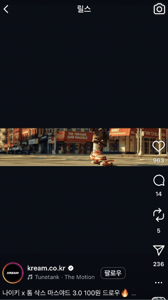 미국 래퍼 ‘칸예 웨스트’의 효과! 그가 이 비율로 된 영상을 인스타그램에 올린 뒤, ‘Thinnest Reels’이라는 별칭으로 해외에서 먼저 유행하기 시작했어요. 얇고 길다 보니, 현재 익숙한 세로형 숏폼보다 시야 몰입감이 훨씬 높아요. 마치 영화관 스크린처럼 시네마틱한 무드를 주는 거죠. 🎬 덕분에 단순 숏폼이 아닌, ‘감각적인 영상’으로 브랜딩하기에도 제격!
