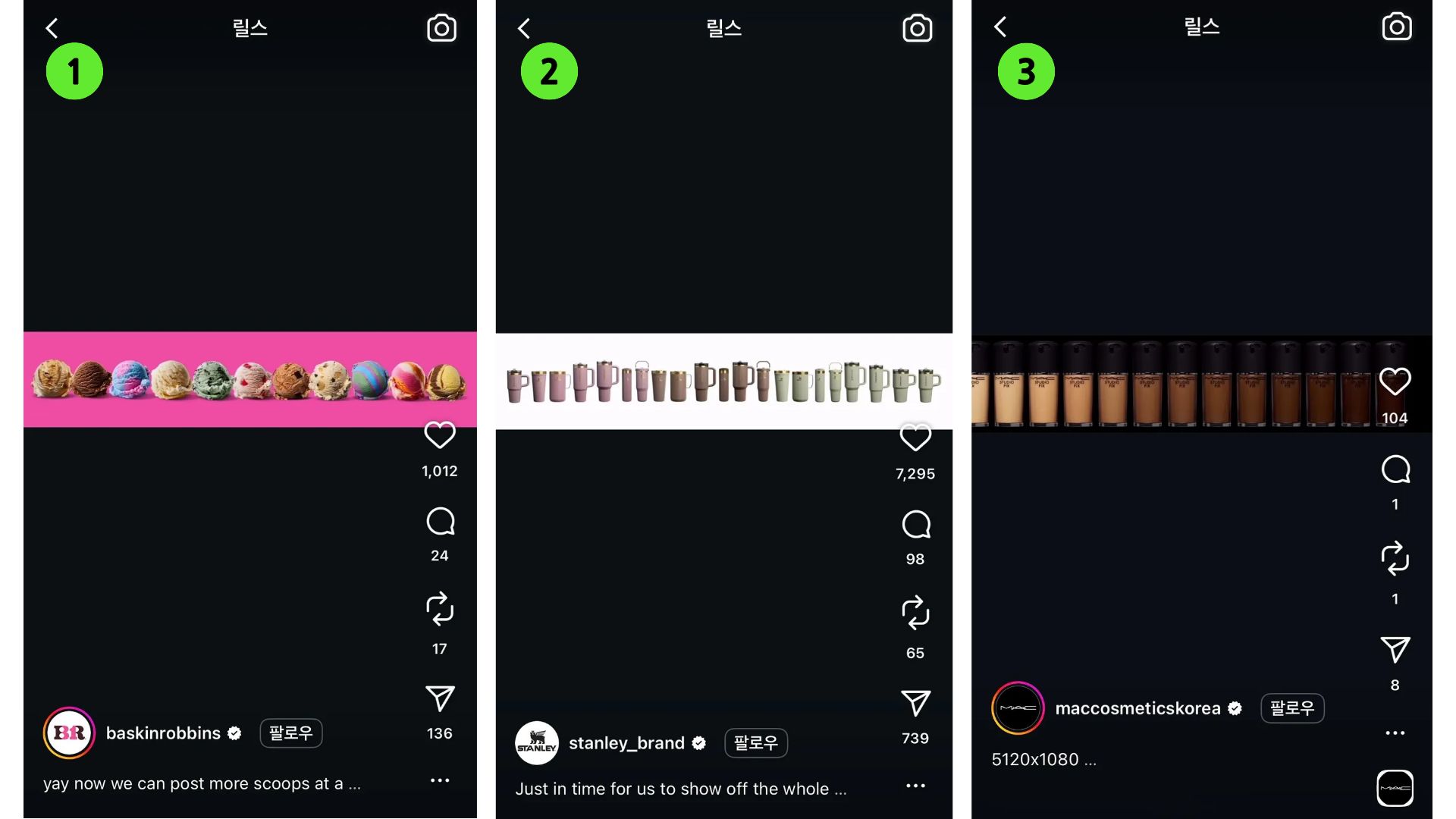 출처 : 인스타그램 ①baskinrobbins ②stanley_brand ③maccosmeticskorea |