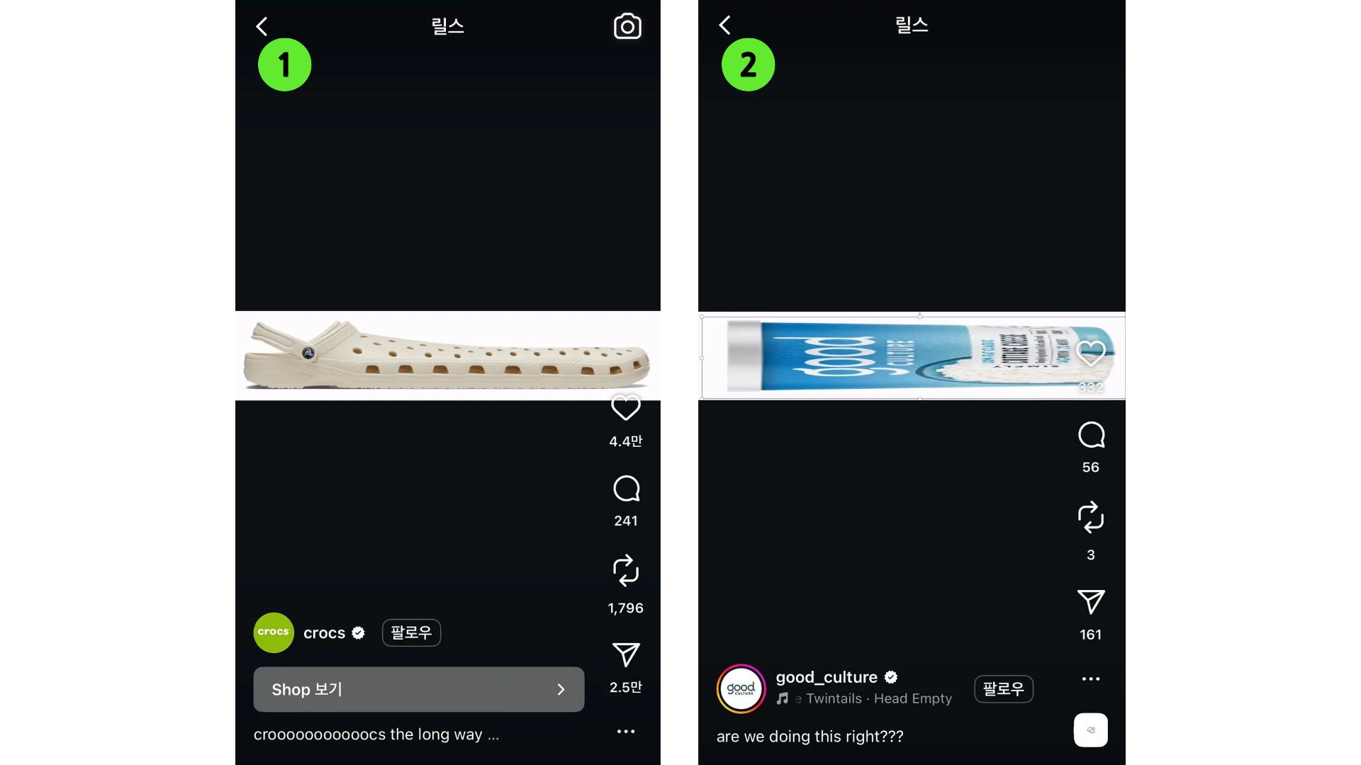 출처 : 인스타그램 ①crocs ②good_culture |
