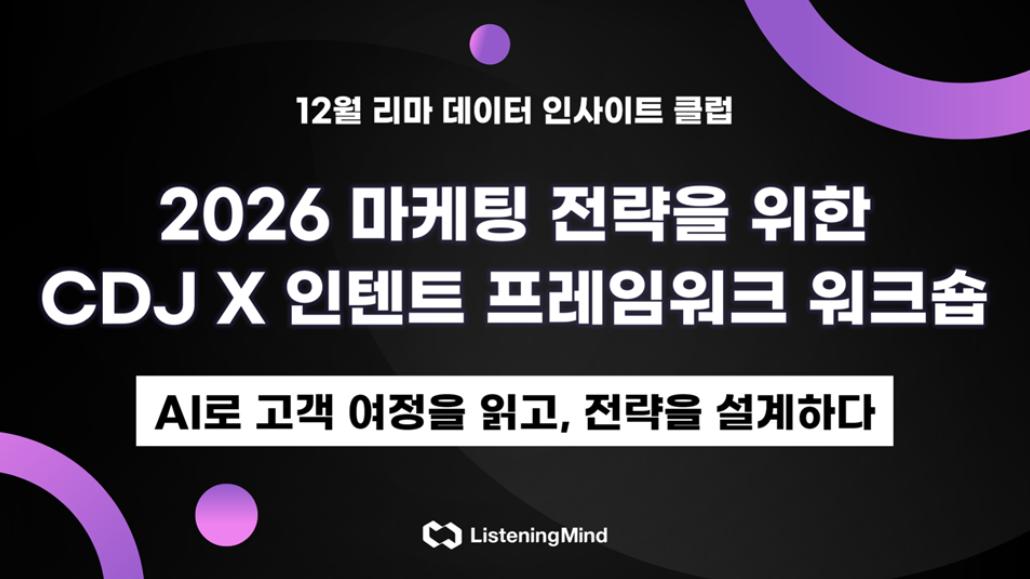 리스닝마인드는 검색 데이터를 기반으로 소비자의 숨겨진 의도를 분석해주는 B2B 마케팅 인사이트 플랫폼이에요. AI가 고객의 검색 흐름 속에서 브랜드가 개입해야 전환이 일어나는 지점을 파악해주고, 마케터는 그 위치에 맞춰 콘텐츠와 메시지를 설계해야 한다는 점을 강조해요.