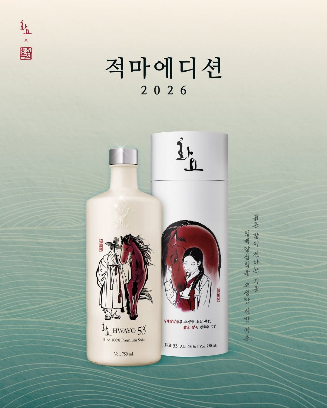 프리미엄 소주로 알려진 ‘화요’에서 2026 적마 에디션을 출시했어요. 기존 화요 패키지와 달리, 이번 에디션은 일러스트레이터 흑요석 작가와 협업해 ‘붉은 말’이라는 컨셉을 담았는데요. 전체적인 인상이 한층 고급스러워지며 선비들이 즐기던 술처럼 절제되고 품격 있게 느껴져요.