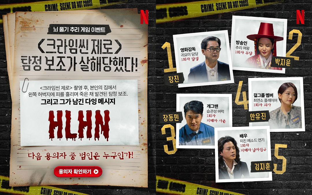 탄탄한 코어 팬층이 제작 소식을 손꼽아 기다렸던 <크라임씬 제로>. 방탈출이나 추리 게임을 즐기는 팬들의 특성을 겨냥해 ‘뇌 풀기 추리 게임’ 이벤트를 기획했어요. 형식은 단순한 댓글 참여 이벤트였지만, 출연진들의 캐릭터와 프로그램의 결을 정확히 이해한 콘텐츠였다는 점에서 큰 호응을 얻었죠 🔎