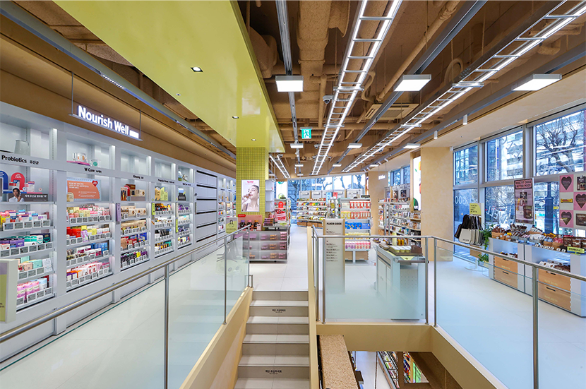 지난 1월 말 광화문 D타워에 문을 연 ‘올리브베러’ 1호점은 약 130평 규모의 2층 공간으로 꽤 큰 점포인데요. 건강 용품으로 이렇게 큰 공간을 채울 수 있을까 싶지만, ‘뷰티’의 범주가 생각보다 넓었듯 웰니스의 범위 역시 꽤 크게 잡고 다양한 제품들로 공간을 채워 넣었어요. ‘웰니스’라는 주제로 어떻게 올리브영이 변신을 했는지 함께 살펴볼까요?