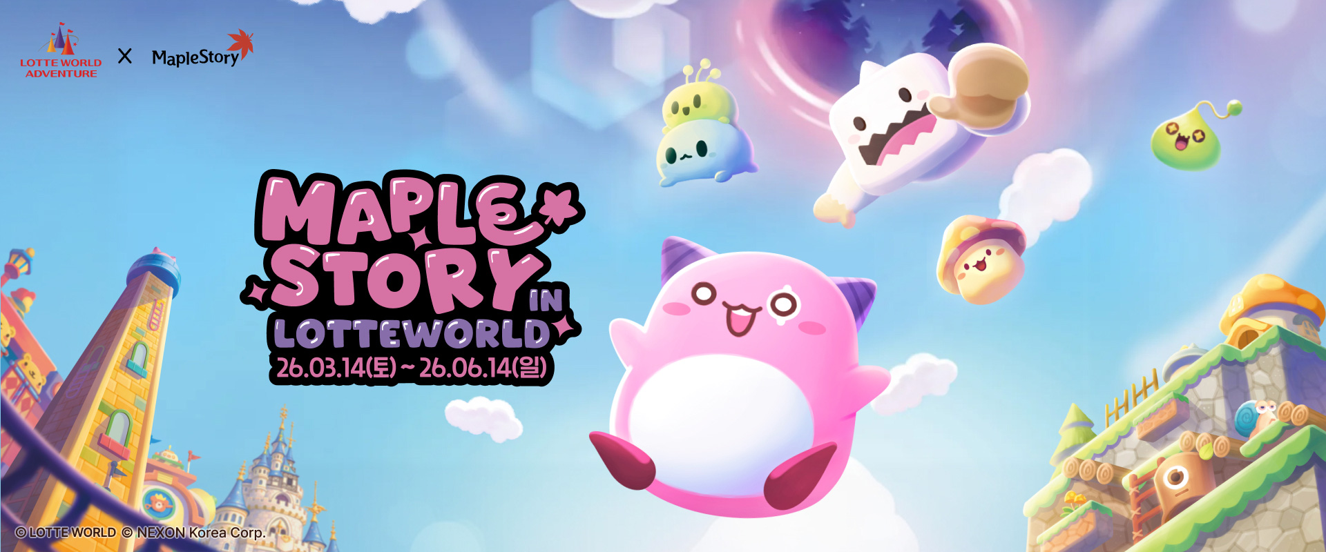 넥슨은 2026년 3월 14일부터 6월 14일까지 약 3개월 동안 잠실 롯데월드 어드벤처에서 메이플스토리 세계관을 접목한 대형 테마 축제를 운영해요.