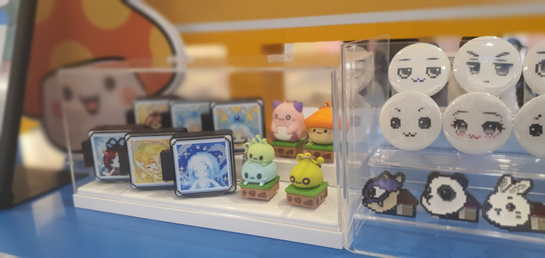F&B와 이곳에서만 살 수 있는 굿즈 역시 재미 요소 중 하나! 게임에서 튀어나온 듯한 빨간 포션, 파란 포션 음료와 주황버섯 치즈빵 같은 식량(?)이 판매되고 있어요. 메소주머니 키링 파우치, 주황버섯 봉제 가방, 핑크빈 LED 키링 등 약 13종의 굿즈도 순차적으로 출시된다고.